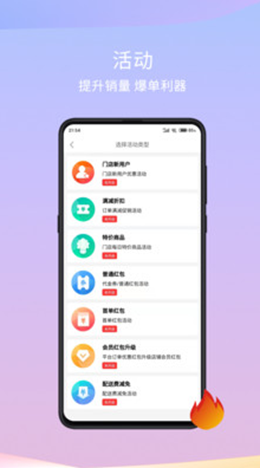 1,软件中拥有非常全面的商业活动模式,通过提升销量的内容可以简单的提供爆单模式,优惠折扣任意选择,吸引客户下单。