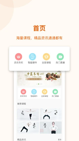 1,道恩健康app中拥有非常庞大的精品资讯内容,海量的课程内容可以覆盖了在生活中关于锻炼以及养生动作训练的模式,让身体得到正确的活动和保养。