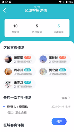 3,区域的客房会有完善的流程进行记录统计客房的卫生工作,每天都可以进行使用和记录,空闲的内容都是非常方便的。