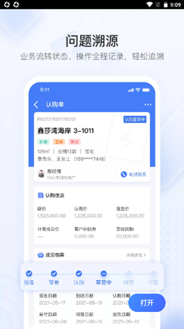 3,高级的认购单服务模式上拥有操作全程记录的服务模式,业务记录将会变得更加稳定直接,流程的全方位统计模式,从审核到认证到签署确认以及付款。