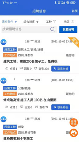 1,工友汇app中拥有非常全面的企业求职和招聘管理服务模式,建筑企业认证之后就可以发布不同类型的职位内容,看到不同类型的建筑工人信息。