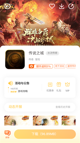 3、任意选择一款喜欢的游戏资源,这里以“传说之城”游戏为例,直接点击“下载”即可。