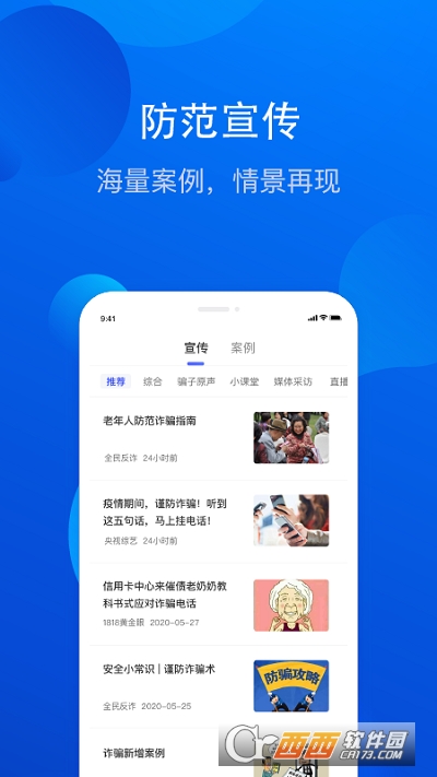 全民反诈中心app推广是一款非常实用的帮助用户们防止电信诈骗的安全手机软件,使用起来非常方便,该软件上有着丰富的反诈知识可以学习,提高用户们的安全意识,防止轻易上当受骗,并且还有各种骗子的一些诈骗手法都在里面,提高用户们的警惕,需要的用户们赶紧来鳄斗163下载全民反诈中心app进行使用.