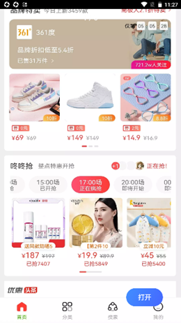 2,准点优惠的抢购服务内容中设计了非常优秀的购物模式,各个方向都可以进行福利获取,除了优惠券还可以折上折。