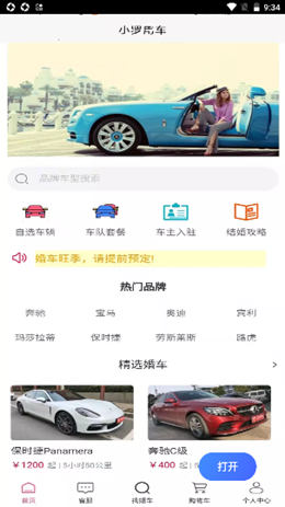 小罗用车app是一夸构建了超级庞大的优秀豪车租赁服务软件,软件上的车辆的功能主要就在于可以为用户提供在婚庆活动中进行租赁,不同的精选豪车以及车队套餐等等,丰富的车辆品牌可以自由参考和选择,匹配锁定位置信息,解决所有的接人问题。