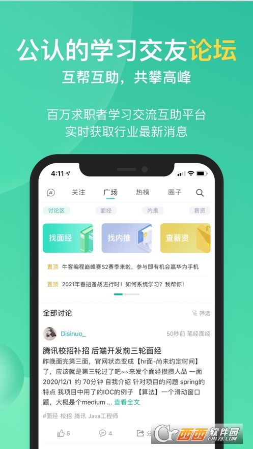 3、修复已知问题,优化用户体验。2022-04-24版本 3.26.44【做题敏捷】专项练习&题目PK功能大改版,岗位对口与好友挑战【求职精准】社招求职职位大开放,适合找工作的你【样式优化】终于更换导航颜色了~希望大家喜欢这清爽的牛客app2021-12-15 版本: 3.26.28提升了稳定性。