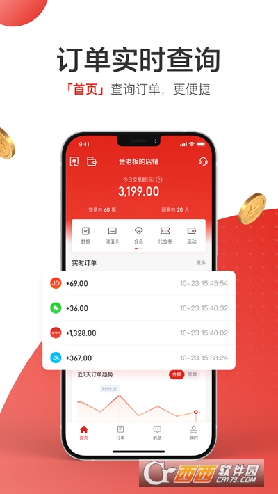 京东收银商户app是哆啦宝(北京)科技有限公司专为线下合作商户开发的移动手机应用,商户可以使用这款软件轻松的查看和管理订单,支持微信、支付宝、花呗、银联等多种收款方式,同时还提供智能语音到账提醒服务,需要的可以来鳄斗163下载京东收银商户app进行使用