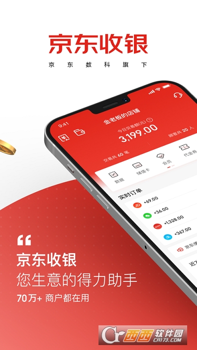 "京东收银商户"是一款为线下商户提供"智慧支付及营销"解决方案的一款应用。采用自主研发的软件和硬件,专为餐饮、商超等消费场景设计,提供聚合收银、账单管理等功能,让商户收好钱、管好钱、多赚钱,助推商户销售额增长!