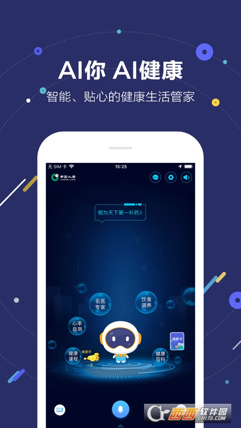 国寿AI健康安卓版是国寿AL健康机器人的手机客户端软件,机器人可以满足用户的多种健康管理需求,通过手机APP连接机器人就可以实现远程查看健康状况,并提供了天气查询、心率测试、健康养生知识等多种功能,需要的朋友可以来鳄斗163下载国寿AI健康安卓版进行使用