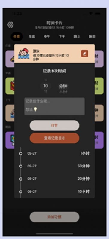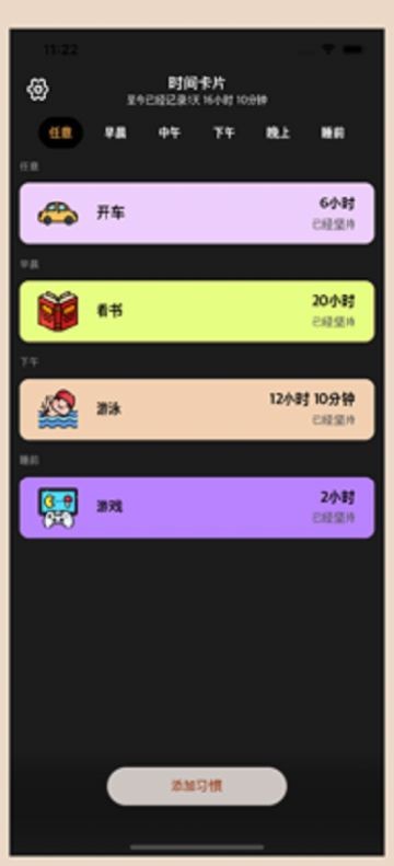 时间卡片会对你的时间进行统计,一段时间以后,记录每个时刻。