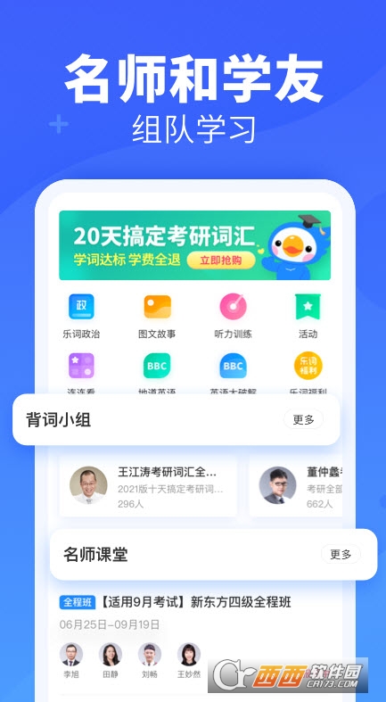 1、【群组背记英语单词―共赢】创建背单词小组 ,制定属于自己的英语单词规则,组内成员凑在一起互帮互助,培养每个人养成良好的背单词习惯。大家“一起背单词”!2、【全新考试干货课程―无料】在背单词时无论是英语四级、六级课程还是托福、雅思核心词汇,亦或是在生活实用英语单词的学习中,大量新东方一线名师各种考试、背单词课程袭来,乐学视频约起来!3、【科学计划词根背记--容易】根据艾宾浩斯记忆曲线,配合中国人背单词的习惯,开发出的英语单词遗忘算法,更搭配词根记忆法帮助用户背单词。