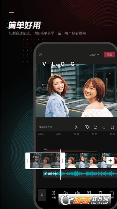 简单好用切割变速倒放,功能简单易学,留下每个精彩瞬间。「切割」快速自由分割视频,一键剪切视频。「变速」0.2倍至4倍,节奏快慢自由掌控。「倒放」时间倒流,感受不一样的视频。「画布」多种比例和颜色随心切换。「转场」支持交叉互溶、闪黑、擦除等多种效果