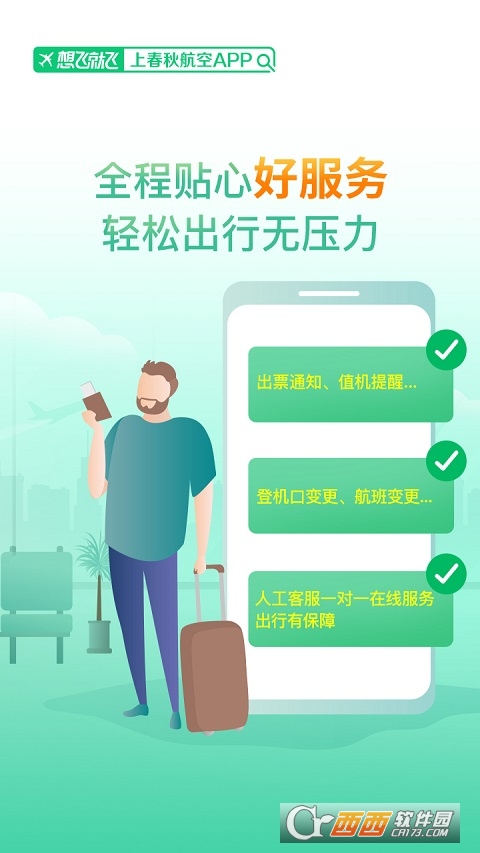 春秋航空app是春秋航空推出的手机客户端软件,使用春秋航空app可以进行机票预订、查询航班动态、参与特价机票活动等服务!春秋航空APP为您提供全面丰富的购票服务,包括:机票预订、酒店预订、航班动态查询、购买增值服务、在线值机、在线选座、机票验真、航班退改、机场助手、预约打车等;