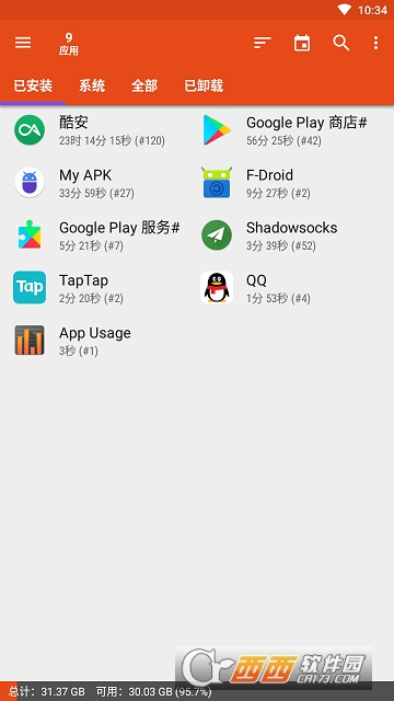 App Usage 提供您各个应用的使用时间,协助你管理应用的使用时间,快速批次卸载应用功能以及各种应用管理相关工具。