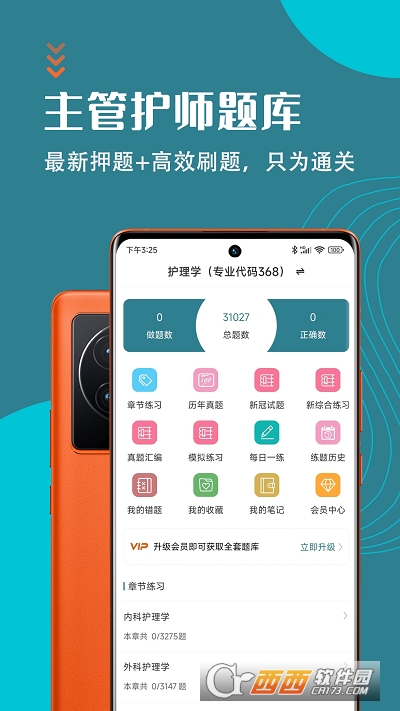 1、主管护师智题库是为备考主管护师考试的同学提供题库练习的学习APP。2、其中涵盖了章节练习,历年真题,预测试卷,真题汇编全面囊括进护师考试的易考考点。3、本软件包含《护理学368》《内科护理学369》,《外科护理学370》,《妇产科护理学371》,《儿科护理学372》,《社区护理学373》,《中医护理学374》等等。