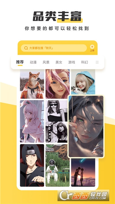 换张新鲜的壁纸,开启元气满满的一天吧!一起来感受缤纷的世界,是清晨林间的光,波澜壮阔的海,鲜丽娇媚的花,亦或是漫天的星空,浩瀚无垠的宇宙。一起来走近你喜欢的ta,是熟悉的动漫人物、满心欢喜的爱豆,心动的男神女神,亦或是治愈的萌宠,炫酷的游戏角色。软件功能