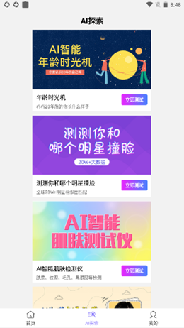 1,识颜app中能够按照强大的管控模组来进行使用和制作的优秀相机工具软件,软件上建立了智能化的年龄相机模式,能够更快的测试不同的年龄大小。