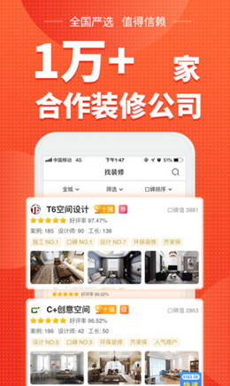 1,年度用户推荐口碑装修公司,新房、二手房、局装、工装全面覆盖设计的内容,标准化施工,工地直播,第三方监理保证。