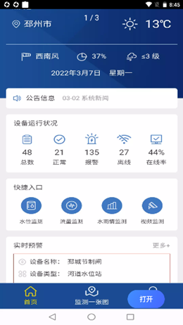 1,邳州防汛app中拥有非常强大的设备系统模组,不同的系统模组都是实打实的位于水流和水讯位置地方进行监控和管理,看淡所有不同的情况浮动变化。