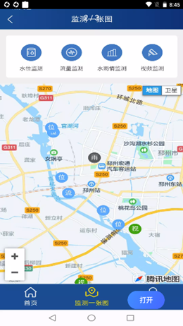 2,监控预览图的水务和水位变化可以看到具体的情况分类,图片上的河流都汇入统一管理方向,查看到更加详细的内容。