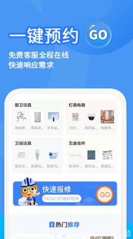 1,啄木鸟水电维修app中建立了庞大的线上预约维修的综合管理服务模式,通过软件的主页面就可以挑选不同类型的定制服务内容预约,师傅接单响应非常快。