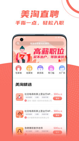 1,美淘直招app中设计了非常独特的找工作渠道模式,灵活用工的管理模式可以建设独特的海量岗位内容,真实岗位都是经过严格的审核,保证了职位真实。