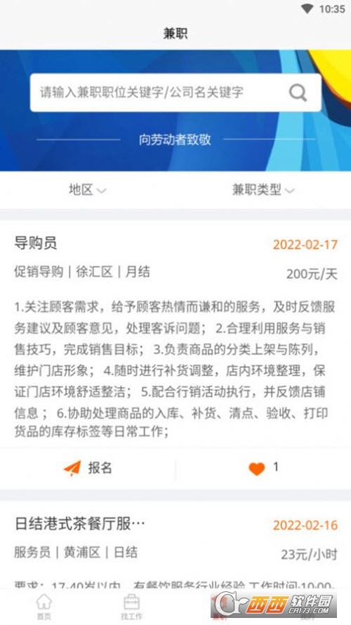 这里所提供的岗位信息分类非常的详细,各种各样的打工类型都可以在这里查看得到;