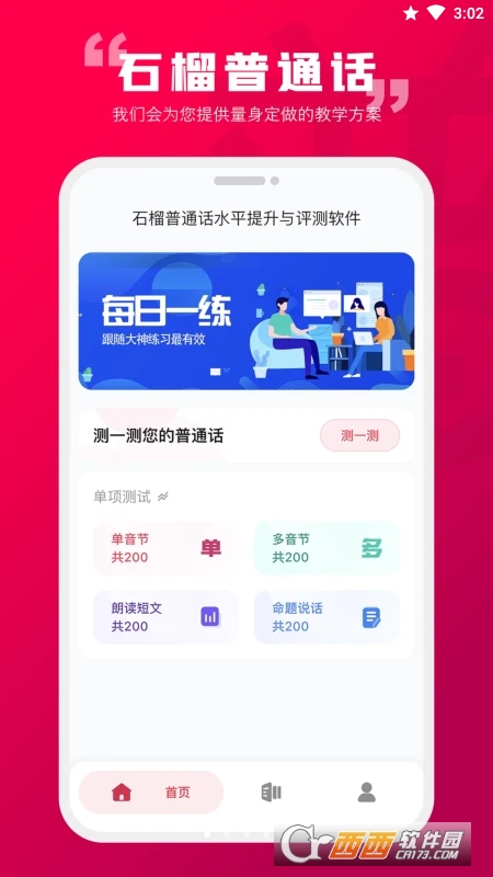 石榴普通话是一款专业的普通话学习的软件,特别是对于考教资等方面的用户来说是非常重要的一个内容,这款普通话学习的软件能够从系统性的方式来辅助用户完成对于普通话上面的学习,让用户能够随时的在手机上面学习到普通话上面的内容,快来鳄斗163下载这款石榴普通话!