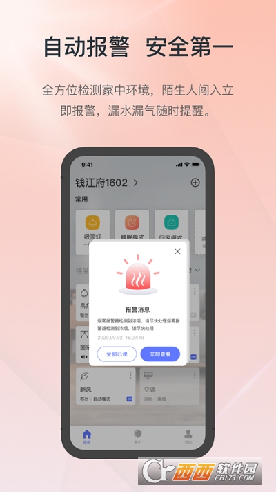 并设有安防设施,开启安防,当家里来人系统将推送预警消息;