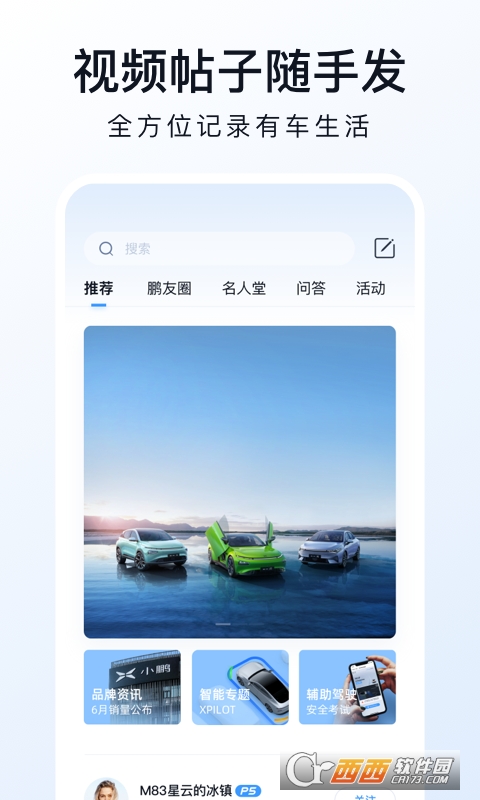 小鹏汽车APP是一款非常不错的手机汽车服务软件,该软件支持在线定位导航、查看摄像头、智能控制汽车温度、门窗等等功能,非常好用,需要的可以来鳄斗163下载小鹏汽车APP使用!小鹏汽车APP是为车主打造的专属智慧出行解决方案,随时随地远程控制车辆、畅享省时省心的智能充电服务、在社区中互动交流,让用车体验更轻松、有趣。