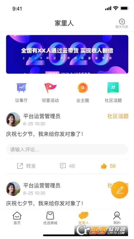 活力社群:吃喝玩乐、优惠不断,更有精彩的社区活动和文化交流,让每一个用户轻松建立社区社交圈;
