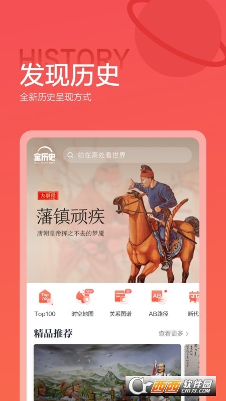 全历史app专注全球历史,给你最为真实还原的历史故事,推荐各种精彩的历史书籍,历史爱好者打造同好圈子一起分享交流,还有ar技术带你穿越时空,让你感受人类的沧桑文明!下载全历史app就能直接使用啦!