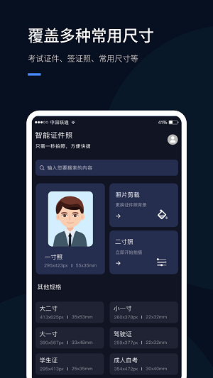 提供多种证件照规格选择,满足国内外不同需求。