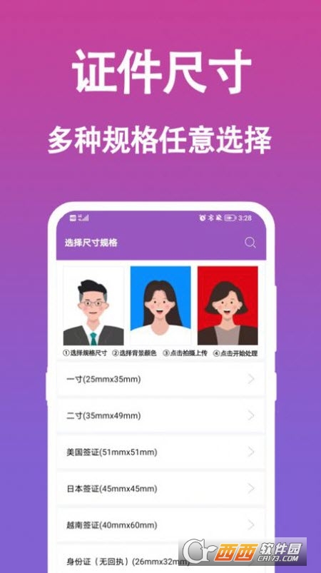 1、涵盖一寸照、二寸照、驾照照片、社保照片、国考照片、省考照片、教资四六级照片、 旅游签证照片等海量证件照规格;