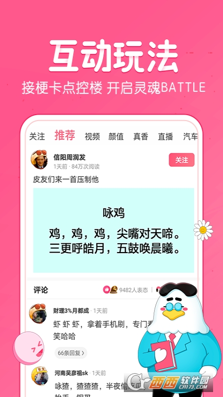 皮皮虾软件是一个手机段子搞笑平台app,皮皮虾app能够带给你更多的乐趣,还有超多精彩的游戏视频,热门搞笑段子以及神评论等等,非常全面的信息带给用户更多有趣的功能,快来下载吧!