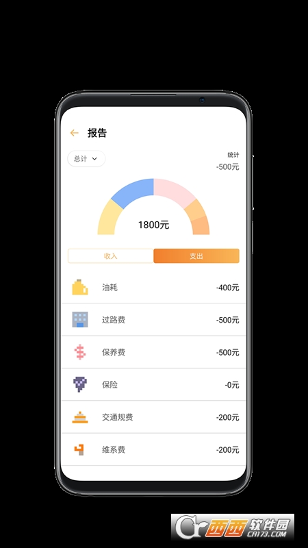 纪录开车收支明细,统计每月收支趋势,各个开支对比输出统计报表,收支明细一目了然