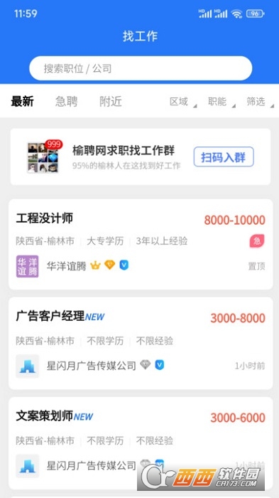 榆聘网是一款招聘信息服务平台、通过APP帮助用户找到合适的工作,各种岗位应有尽有,满足你求职的需求,在线和HR老板聊,让你了解岗位的具体情况,选择合适的岗位,有需要的快来西西软件园下载吧!