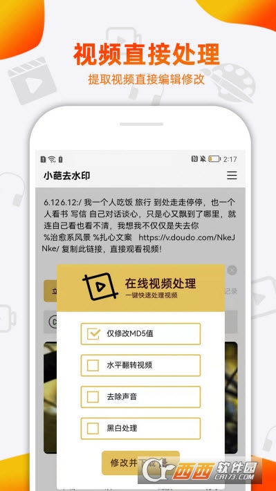 支持视频黑白处理,无声处理,修改视频MD5,视频水平翻转功能。