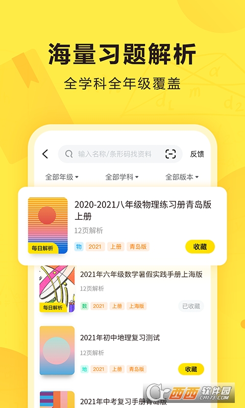 1、答案全:语数英政史地理化生,覆盖全部学科90%以上的课本练习册答案和解析