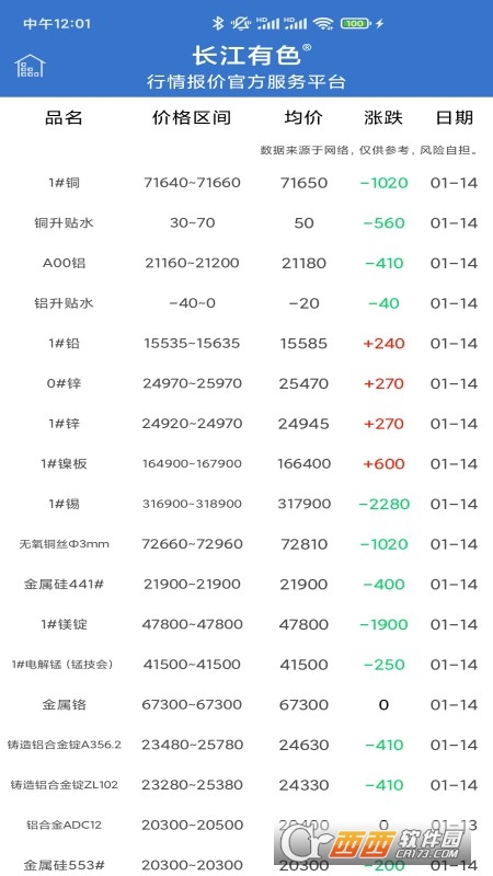 长江有色(金属价格行情),长江有色app提供最全的金属价格行情,可以查看当前主流金属板块的价格以及涨跌数据信息,并且全部数据都是实时更新的,让您轻松了解最新的金属价格走势,作出关键的决策。本次带来长江有色app安卓版下载,需要一款金属价格行情查询软件的朋友们快来下载试试吧!
