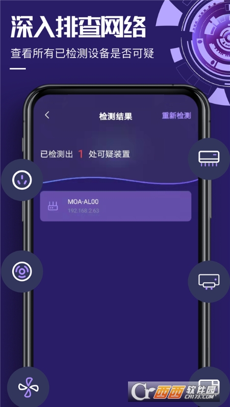 1.详细全面的帮助用户查看扫描的列表能够让所有的设备都无所遁形,还有便捷的可疑设备提醒非常的实用功能。