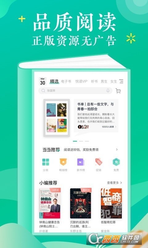 当当云阅读(曾用名:当当读书),我的掌上云书房!提供50万正版电子书、听书、网文、漫画等全品类一站式阅读,导读编辑为你专业荐书,听书与租阅优质出版物好看更好听!每日限抢为你精打细算,社区以文会友,让阅读不再孤独!是每一个人随身共享的全民云阅读平台。