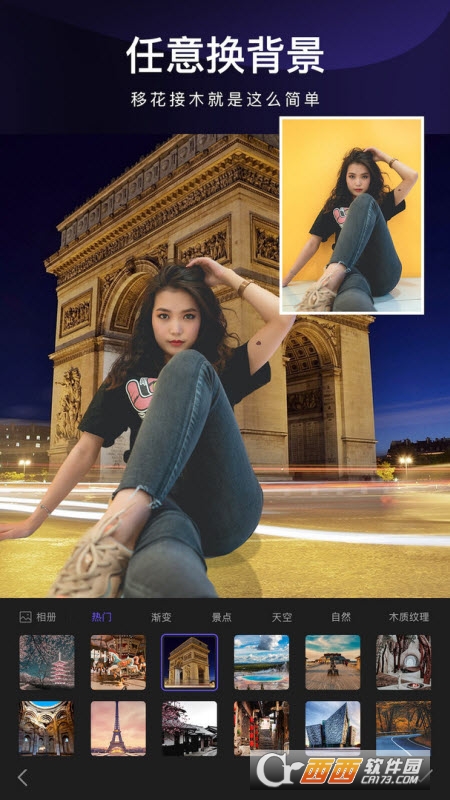 大量精美背景,特效,天空素材,让您轻松将人物融入精美背景中,强在的合成功能,总能让你以假乱真,帮你移花接木般的神奇之旅