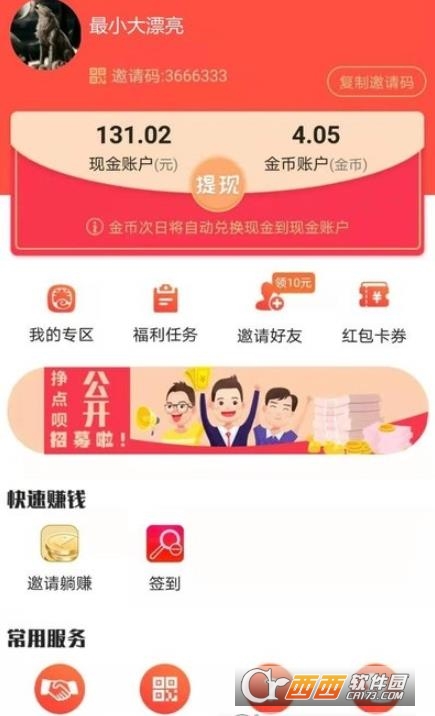 1、邀请赚钱:成功邀请好友可赚5元,有机会得188元。