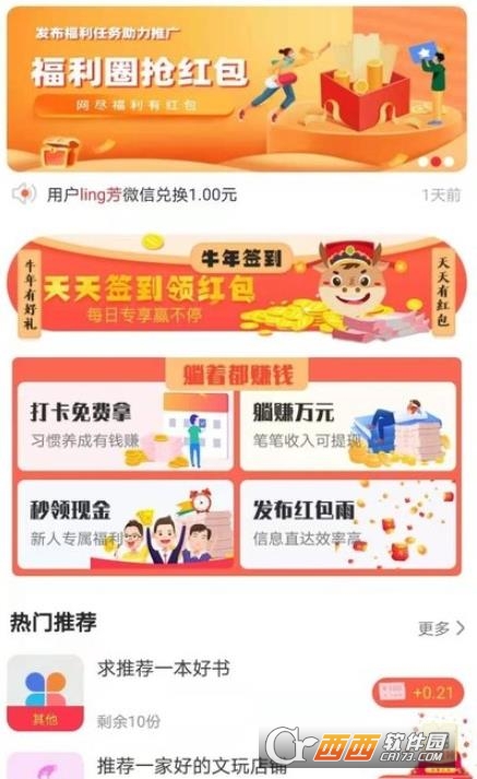 3、涵盖了签到,阅读,转发,试玩等简单的兼职丰富,可以帮助我们在线上来赚取更多的零花钱;