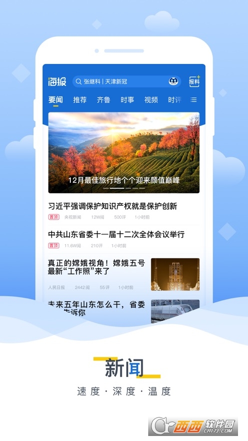 海报新闻是一款非常专业的新闻资讯软件,原名是山东24小时。海报新闻app为用户提供了海量的新闻资讯阅读,新闻资讯实时更新,内容种类,资源丰富,涵盖头条、娱乐、体育、财经、体育、影像等多种类型的新闻资讯,让你每天都能了解发生的趣事,欢迎下载~