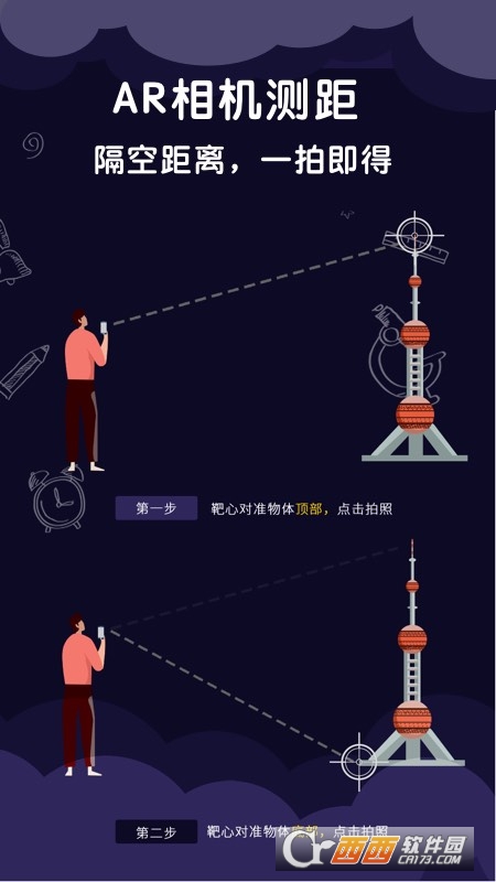 测高仪,AR测距,只需三步即可测出孩子的身高、远方高楼的高度,输入身高-对准物体底部拍照-移动建筑顶部拍照,即可准确测出楼的高度,操作简便