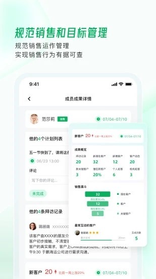 3、数据简报、业绩排行榜,实时更新业务全流程数据。随时随地,轻松掌握过程指标,专注实现销售目标。