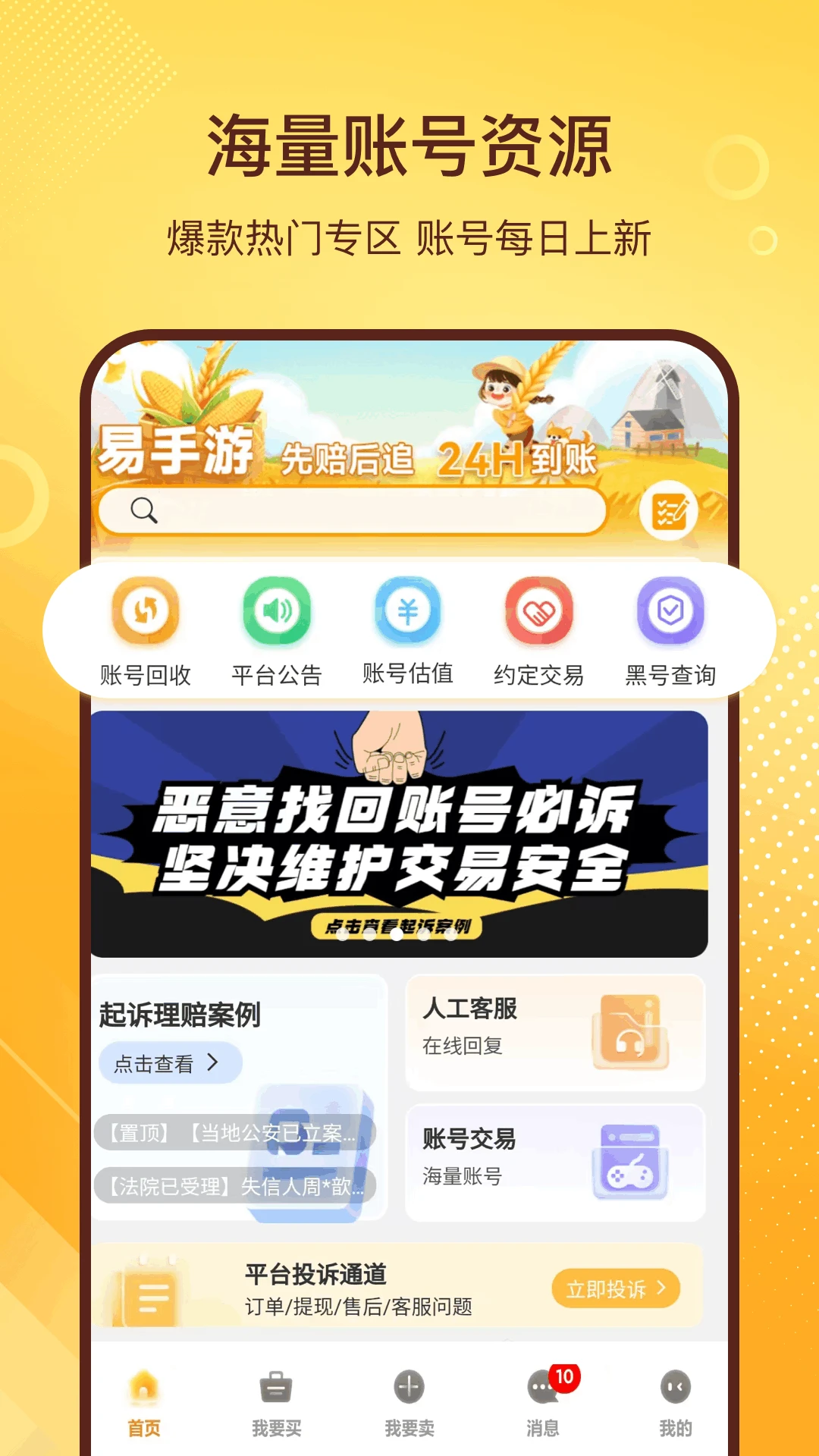 易手游软件是一款很好用的游戏账号交易平台软件,软件涵盖了各大游戏的账号,包括王者荣耀、和平精英、蛋仔派对等等,满足不同用户的需求,确保用户可以在这里购买到自己所需要的账号,而且用户还可以出售自己的账号,软件会提供便捷的服务流程,同时还有24小时的客服随时回复用户的问题。