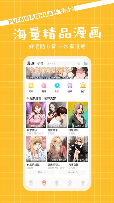扑飞阅读最新版是一款福利领到手软的小说阅读app,看小说追漫画,漫画资源更新速度快,感兴趣的话,用户可以在线阅读多种漫画资源,在这里,从穿越小说到悬疑小说,不需要充值会员就可以观看,喜欢扑飞阅读最新版的用户,快来下载体验吧!